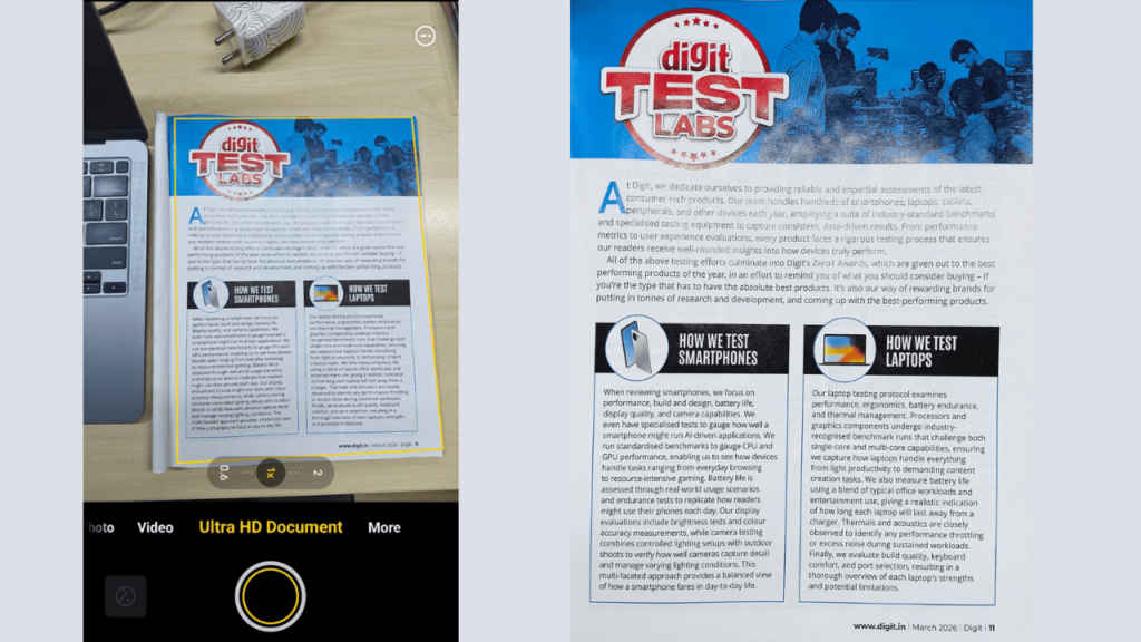 A super handy feature comes in the form of the UltraHD Document mode, which has been built into the OriginOS camera app itself. If you’re a working professional, then I’m sure you can relate that scanning documents can be a big hassle, and cropping them to the correct size isn’t always as simple as we think it is.