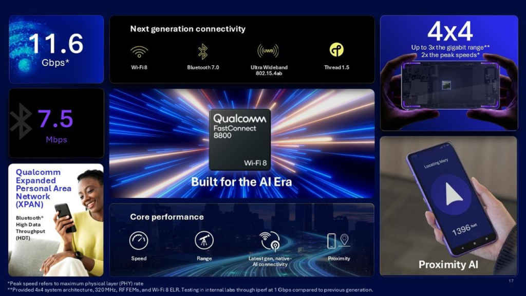 More interestingly, FastConnect 8800 integrates Wi-Fi 8, Bluetooth 7.0, UWB (802.15.4ab), and Thread 1.5 on a single chip. That convergence matters because Wi-Fi 8 isn’t being framed as a faster pipe – it’s being positioned as part of a unified sensing and proximity architecture. This brings us to Qualcomm’s second big idea.