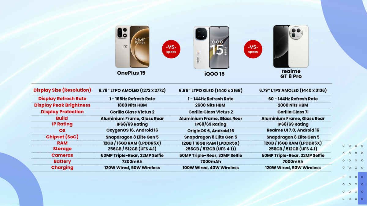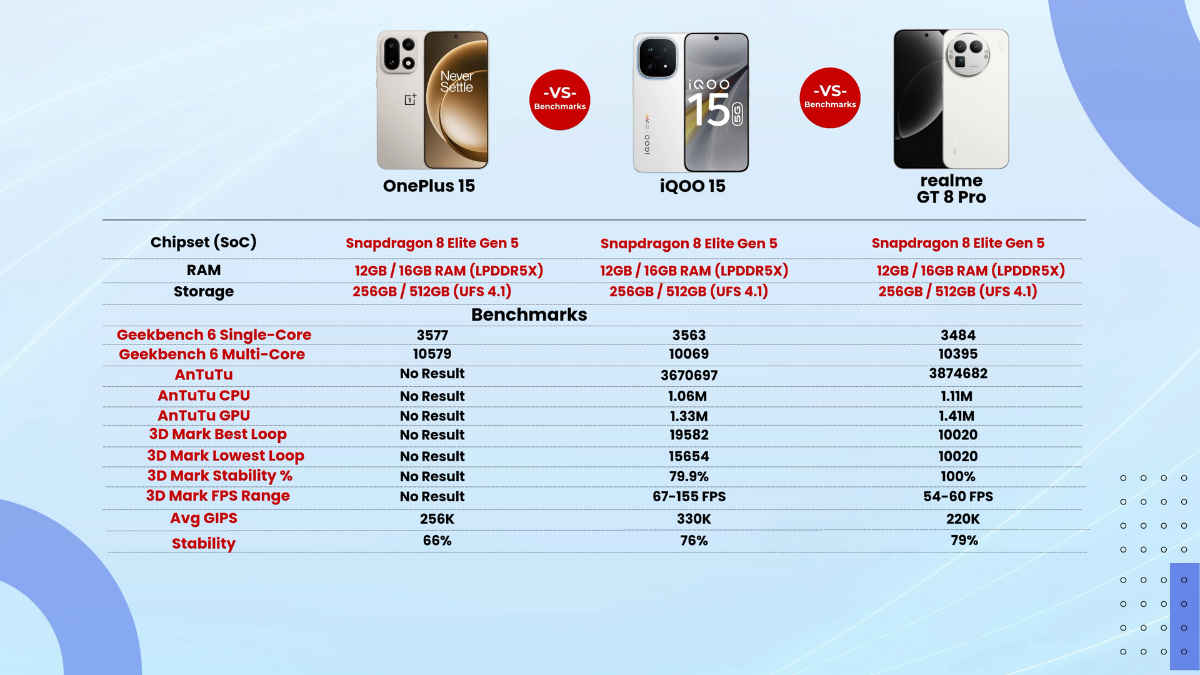 Long story short, if your priority is maximum battery percentage at the end of the day, the OnePlus 15 looks impressive. If you value stability and consistency, the Realme GT 8 Pro makes a strong case. But if you want the best balance of power, thermals, display quality and real-world performance, the iQOO 15 is the phone that truly stands out in this three-way battle.