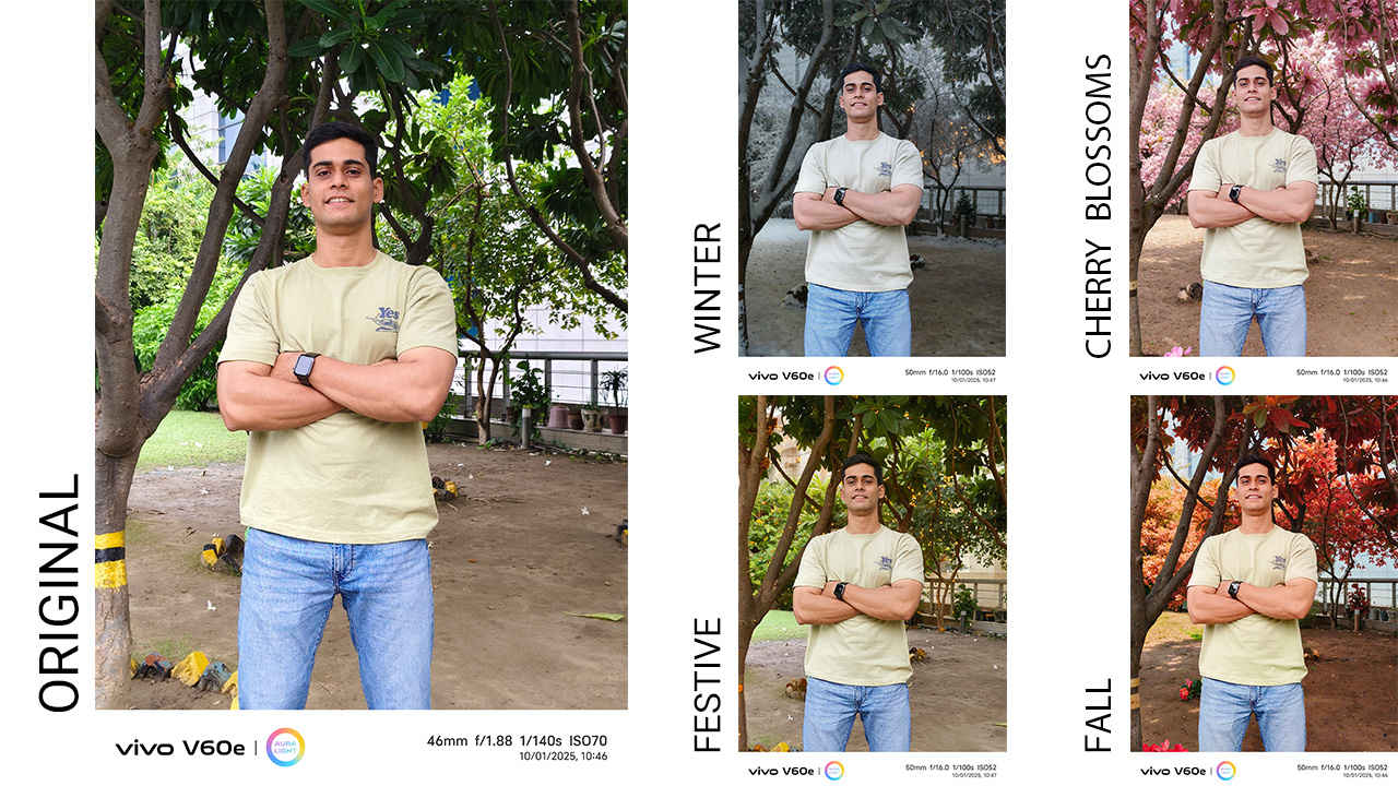 It is a quick way to match the vibe of a portrait to the story you are telling, from sunlit holiday snapshots to cosy festive gatherings. And the v60e also features India’s first AI festival portrait filter which leans into celebration, adding delicate floral motifs and warm, festival-style illumination that feels part of the scene rather than pasted on, which helps everyday portraits carry a sense of occasion without manual layering or third-party apps.