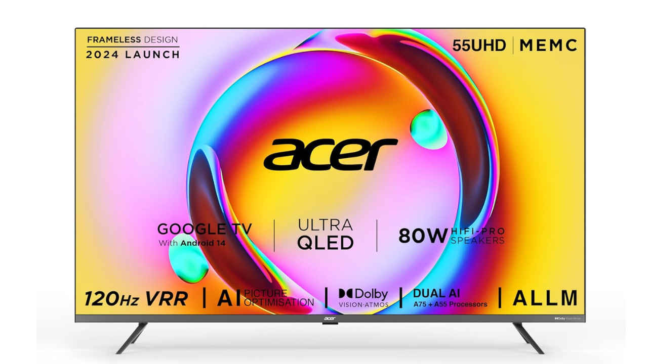 Acer’s Super Series 55-inch TV supports a 120Hz Variable Refresh Rate (VRR) and ALLM, which help reduce screen tearing and lag when playing fast-paced games. The Ultra QLED 4K display offers bright and punchy visuals, and Dolby Vision ensures a high level of contrast and colour accuracy. The 80W speaker system, complete with GIGA BASS and Dolby Atmos, adds to the immersion with powerful audio. It also runs Google TV with Android 14, meaning you get access to all major streaming apps. With three HDMI 2.1 ports, you won’t have to constantly swap cables between your gaming console and other devices.