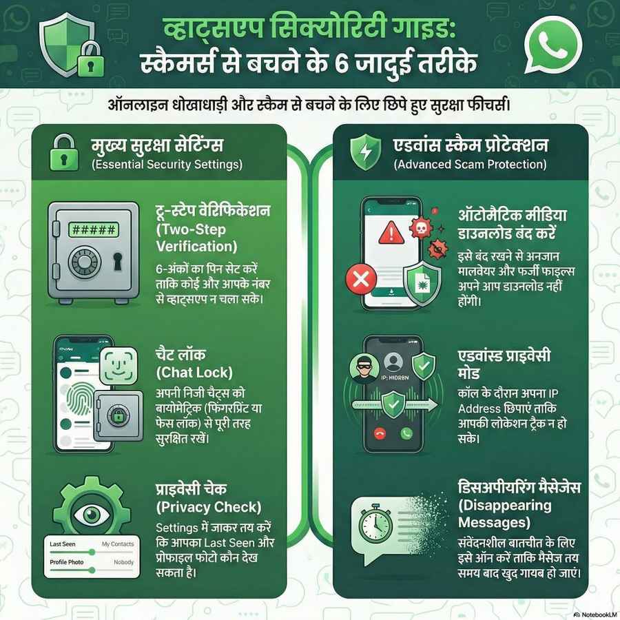 दुनिया का सबसे ज़्यादा इस्तेमाल किया जाने वाला मैसेजिंग ऐप WhatsApp लगातार अपनी end-to-end encryption और प्राइवेसी फीचर्स को मज़बूत बनाता है, इसी के चलते व्हाट्सएप महीने भर में कई बार कोई न कोई फीचर पेश करता रहता है, हालांकि, जैसे जैसे फीचर लॉन्च हो रहे हैं, व्हाट्सएप लगातार ऑनलाइन स्कैमर्स की चपेट में भी आता जा रहा है, काफी समय से व्हाट्सएप के यूजर्स को स्कैमर्स बड़े पैमाने पर निशाना बना रहे हैं। रोज़मर्रा की बातचीत के दौरान लोग अक्सर WhatsApp पर आधार कार्ड, बैंक डिटेल्स, OTP और पर्सनल फोटो जैसी संवेदनशील जानकारी शेयर कर देते हैं, जिसका फायदा उठाकर ठग वित्तीय धोखाधड़ी, पहचान की चोरी और दूसरे ऑनलाइन स्कैम को अंजाम देते हैं। अच्छी बात यह है कि WhatsApp में मौजूद कुछ ज़रूरी प्राइवेसी टूल्स को सही तरीके से ऑन करके आप अपने अकाउंट को काफी हद तक सुरक्षित बना सकते हैं। आइए जानते है कि आखिर ये कौन से टूल और फीचर हैं, जिनका इस्तेमाल करके आप अपने व्हाट्सएप अकाउंट को सुरक्षित बना सकते हैं। खास बात यह है कि यह फीचर हिडन हैं, इसी कारण ज्यादातर ग्राहकों को इनके बारे में पता ही नहीं है, लेकिन आज के बाद आपको इन हिडेन टूल्स और फीचर्स के बारे में पता होने वाला है।