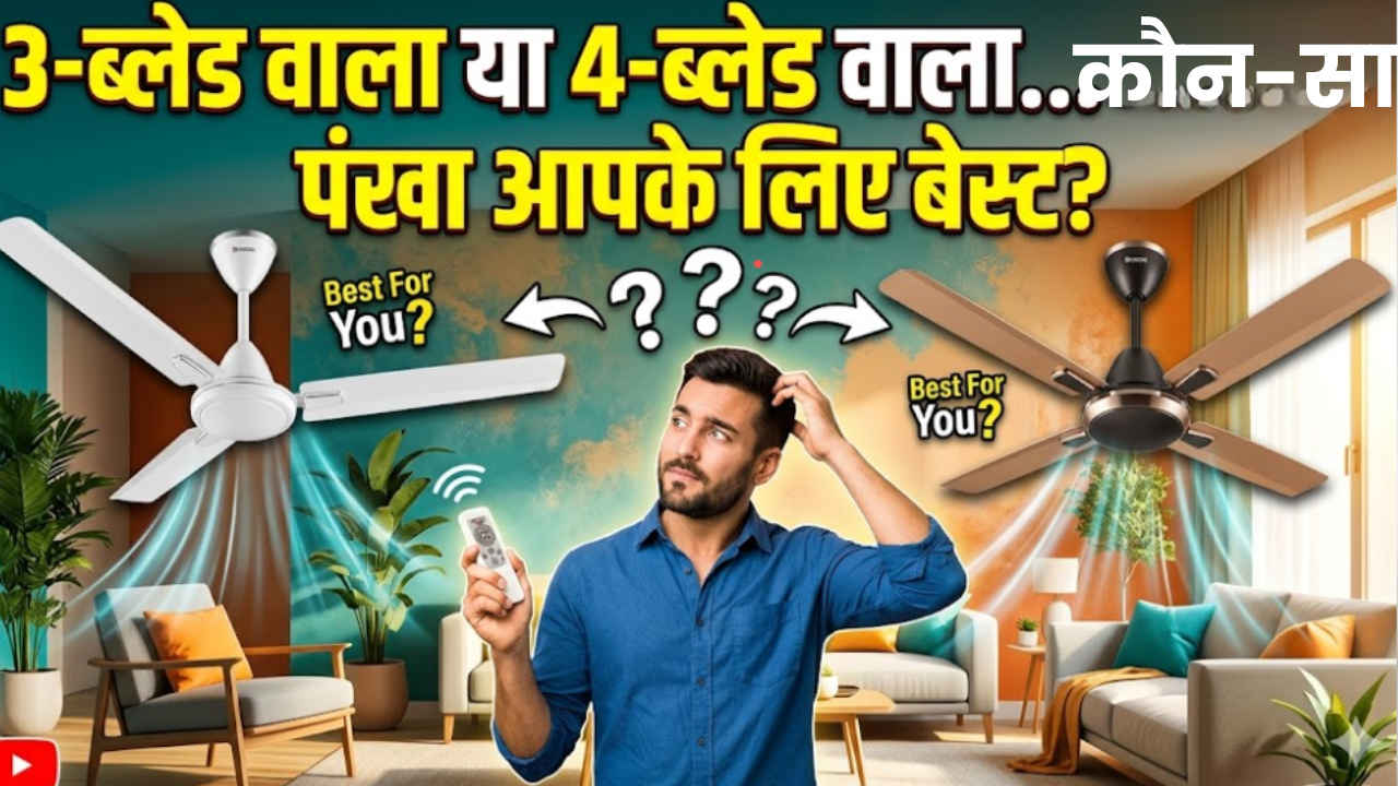 भारत में Ceiling Fan हर घर का जरूरी हिस्सा है, लेकिन ज्यादातर लोग इसे बिना सोचे-समझे खरीद लेते हैं. असल में सही Ceiling Fan चुनने के लिए सिर्फ डिजाइन नहीं, बल्कि उसके ब्लेड की संख्या भी बहुत मायने रखती है. 3 ब्लेड और 4 ब्लेड फैन के बीच का फर्क समझना जरूरी है, वरना आप गलत चुनाव कर सकते हैं.