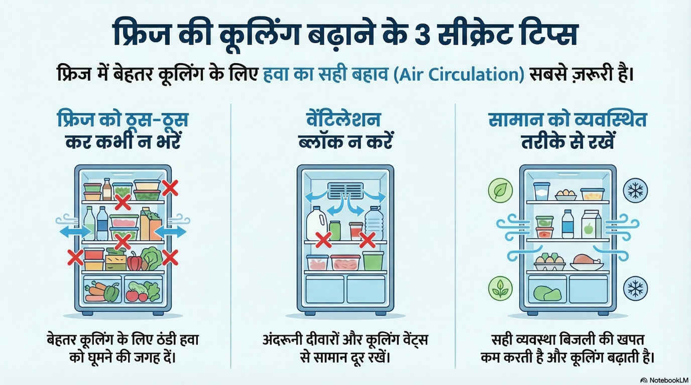 फ्रिज को ठूस-ठूस कर ना भरें! कूलिंग बढ़ाने के 3 सीक्रेट टिप्स, जो मैकेनिक आपको कभी नहीं बताएगा
