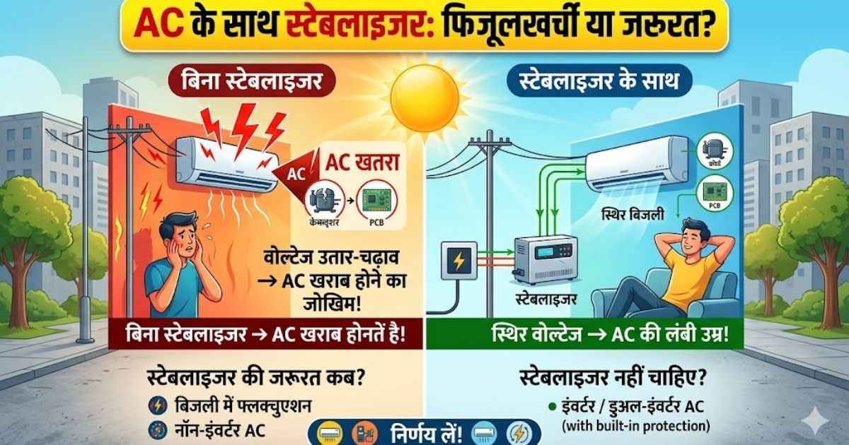 AC के साथ स्टेबलाइजर खरीदना सही या फिजूलखर्ची? समझें गुना गणित।