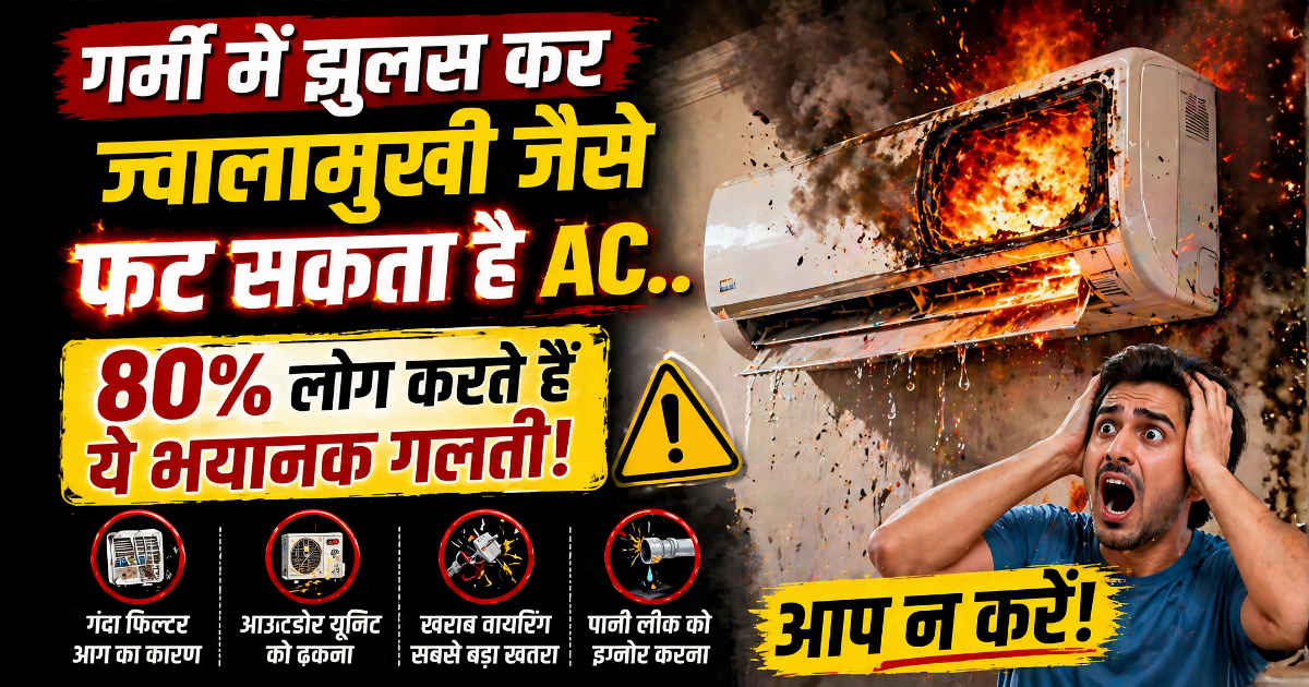 गर्मी आते ही AC चलाना शुरू हो जाता है, सभी अपने अपने AC को ऑन कर लेते हैं तो इसके बाद भूल सा जाते हैं कि यह भी तो एक मशीन है। महीनों तक इसकी ओर कोई देखता नहीं है, ऐसे में AC बेसुध चलता रहता है। सभी करते बस इतना हैं कि रीमोट उठाया ऑन का बटन दबाया, इसके बाद तापमान को सेटअप किया और बस दो गए। हालांकि, क्या आप जानते हैं कि एक मशीन के साथ जो आपके घर में ही आपके साथ लागि हो, लापरवाही बेहद ही भारी पड़ सकती है। हम हर साल बहुत सी रिपोर्ट AC में आग लगने के बाद ब्लास्ट होने से जुड़ी होती हैं। इसका मतलब है कि एसी में आग लगने के बाद उसमें ब्लास्ट की खबर अब सभी जगह से आना शुरू हो गई हैं। हालांकि, अगर इसके पीछे के कारण को देखा जाए तो सभी इसे जानकर एक बार के लिए तो दंग ही रह जाने वाले हैं। असल में, छोटे शब्दों में कहा जाए तो आपकी गलती के कारण ही आपका AC ब्लास्ट हो जाता है। यह सुनकर आपको हैरानी होने के साथ साथ यह बात अजीब लग रही होगी लेकिन यह सच है। अगर अपने भी गर्मियों के शुरू होते ही अपने एसी को ऑन कर लिया तो आप सही जगह पर आ गए हैं, यहाँ हम आपको बताने वाले हैं कि आखिर कैसे आप अपने एसी को ज्वालामुखी के जैसे फटने से रोक सकते हैं और इससे लंबे समय के लिए कूलिंग प्राप्त कर सकते हैं।