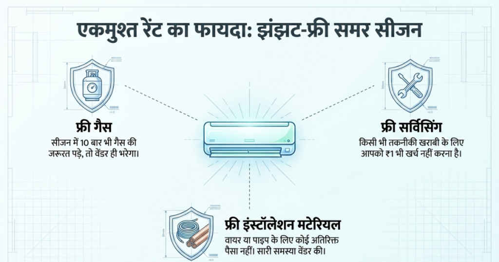 - कुल मिलाकर एक बार रेंट करने पर सारी समस्या रेंट पर AC देने वाले की होने वाली है।