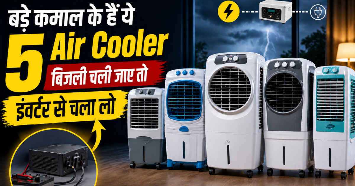 हर कोई गर्मियों में AC जैसी ठंडक चाहता है। सभी एक ऐसा डिवाइस खरीदना चाहते हैं जो निरंतर ठंडक देता रहे। हालांकि, अगर आप ऐसे डिवाइस के साथ जाते हैं तो आपको यह भी ध्यान रखना चाहिए कि ऐसा होने से आपका बिजली का बिल भी बढ़ने वाला है। कई बार ऐसा AC खरीदने के बाद होता है, AC निरंतर चलता रहता है और मन्थ एंड में आपको पता चलता है कि आपका बिजली का बिल उतना हो चुका है, जितना आप कभी भी भरना नहीं चलते हैं। यह बिल आपको जेब पर भी ज्यादा से ज्यादा असर डालता है। ऐसे में आपको एक नॉर्मल कूलर के साथ ही जाना चाहिए। आजकल बहुत से कूलर बाजार में ऐसे भी हैं, जो लंबे समय तक चलने के बाद भी आपके बिजली के बिल को नहीं बढ़ाते हैं। इसके अलावा अगर आप इंवर्टर एयर कूलर खरीद लेते हैं तो बिजली अगर चली भी जाए तो भी दिक्कत नहीं होती है। यह बिजली चली जाने के बाद भी चलते रहते हैं। यहाँ हम आपको 5 एयर कूलर्स के बारे में जानकारी देने वाले हैं, जो इंवर्टर पर भी चलते रहते हैं। आइए इनके बारे में एक एक करके जानते हैं।