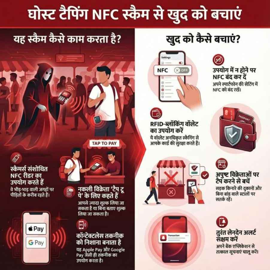घोस्ट टैपिंग पूरी तरह से नियर फील्ड कम्युनिकेशन (NFC) टेक्नोलॉजी पर निर्भर है. यह वही तकनीक जो आपके Apple Pay, Google Pay या Samsung Wallet में होती है. स्कैमर्स अपनी जेब में पोर्टेबल NFC रीडर्स (PoS मशीनें) या मॉडिफाइड स्मार्टफोन्स लेकर चलते हैं.