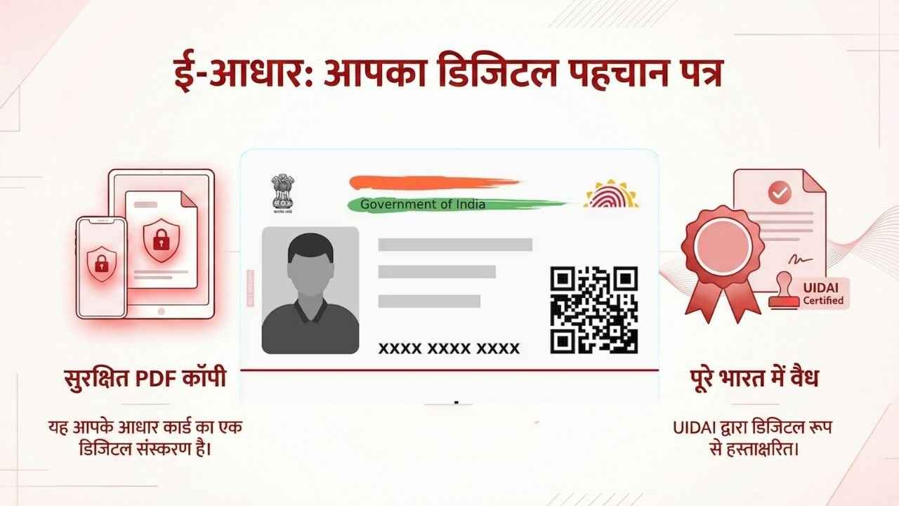 आज डिजिटल दुनिया इतनी विकसित हो चुकी है कि हमारी ज़िंदगी का बड़ा हिस्सा मोबाइल फोन में सिमट चुका है। ऐसे में हर जगह फिजिकल आधार कार्ड साथ लेकर चलना न सिर्फ असुविधाजनक लगता है, बल्कि इसके खो जाने या खराब होने का डर भी बना रहता है। इसी परेशानी को देखते हुए UIDAI ने e-Aadhaar की सुविधा शुरू की है। यह आपके फिजिकल आधार कार्ड का डिजिटल वर्जन है, जिसे UIDAI की ओर से आधिकारिक तौर पर जारी और डिजिटल रूप से साइन किया गया है। इसके साथ आप अपने बैंक से जुड़े काम, सरकारी दस्तावेज़ों की जरूरत या फिर पहचान से जुड़े सभी काम आसानी से कर सकते हैं। ऐसा कहा जा सकता है कि यह डिजिटल आधार कार्ड भी फिजिकल आधार कार्ड जितना ही मान्य होता है और काम को काफी आसान बना देता है।