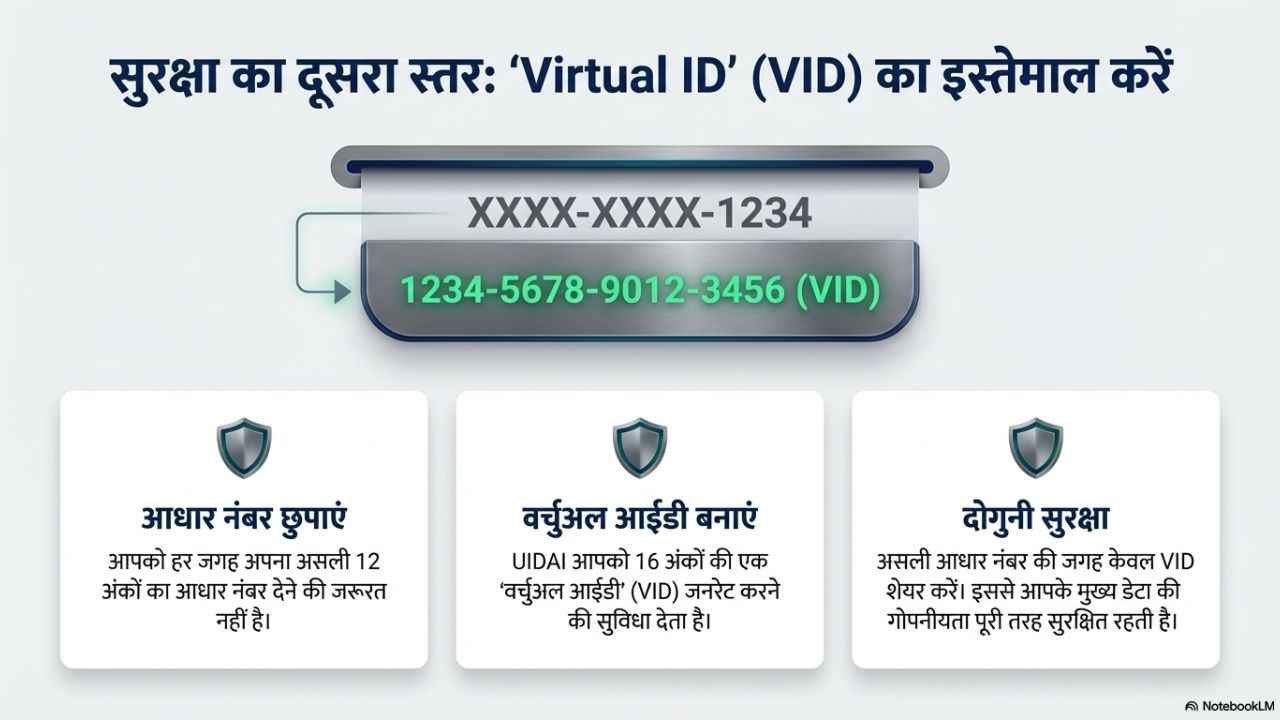 इसके अलावा, अगर आप ज्यादा से ज्यादा सुरक्षा चाहते हैं तो आपको Virtual ID (VID) का इस्तेमाल करना चाहिए। इससे आपको हर जगह असली आधार नंबर देने की जरूरत नहीं पड़ेगी।