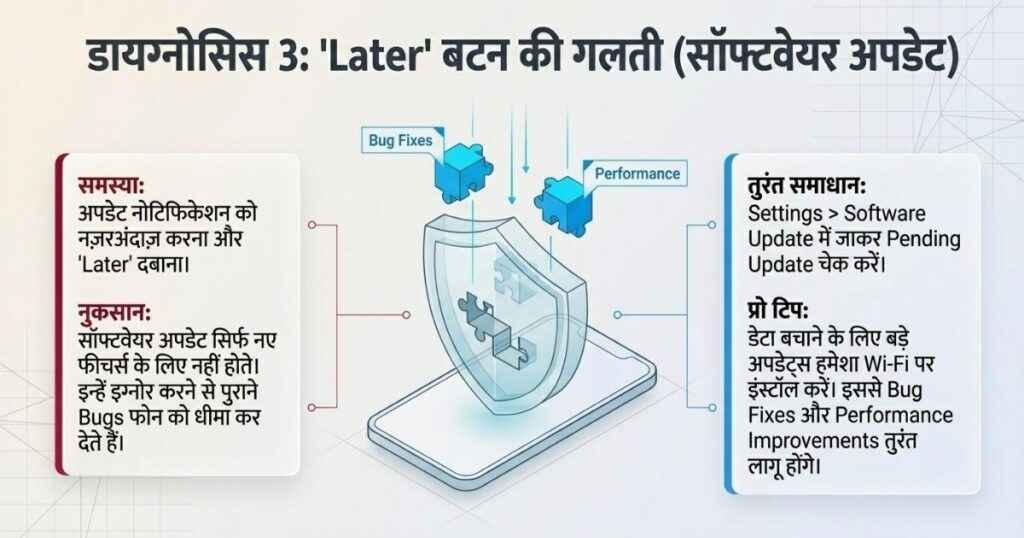तीसरा कारण: फोन का Software अपडेट नहीं है