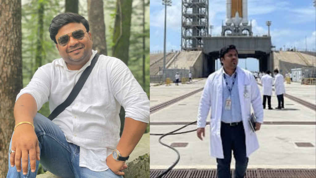 प्रॉम्प्ट 2: Create this image as the man walking in front of Nasa launch pad with space scientist dress.