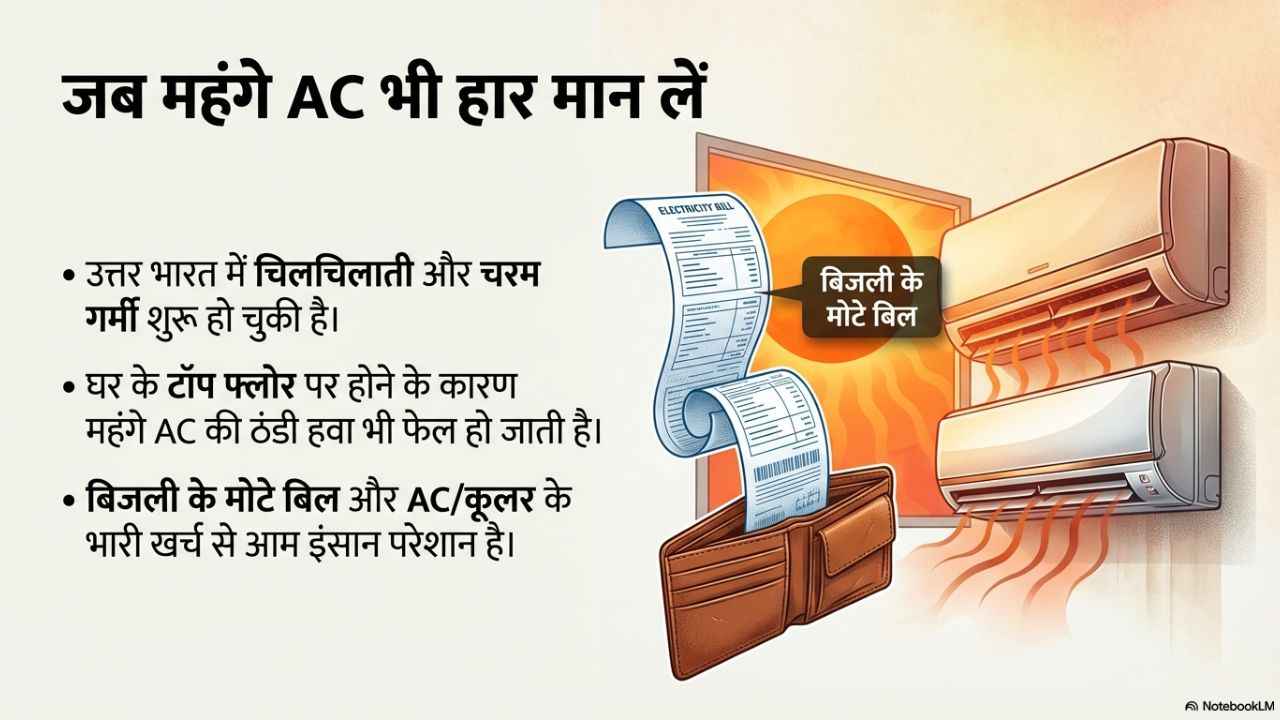 उत्तर भारत में चिलचिलाती गर्मी शुरू होने लगी है। अभी तो इसकी शुरुआत हुई ही है, ऐसे में गर्मी धीरे धीरे बढ़ने वाली है, लेकिन जरूर जल्द ही ऐसा भी माहौल बनने वाला है, जो आपको गर्मी के चरम को भी दिखाने वाला है। असल में, ऐसा अनुमान लगाया जा रहा है कि इस साल बाकी सालों के मुकाबले कुछ ज्यादा ही गर्मी पड़ने वाली है। मैंने पिछले साल ऐसा अपने ही घर में महसूस किया था कि ज्यादा गर्मी के चलते और घर का टॉप फ्लोर पर होना एसी की ठंडी गवा को बड़े पैमाने पर बाधित कर देता है। ऐसे में आपको AC से भी उस तरह की ठंडी हवा नहीं मिल पाती है, जैसी आपको गर्मियों की एकदम शुरुआत में या जैसी हवा की आप उम्मीद कर रहे होते हैं। ऐसे में क्या किया जाए कि आपके घर में ठंडक रहे और आपको AC जैसे महंगे गैजेट को भी न खरीदना पड़े। मैंने इंटरनेट को खोजा और मुझे एक ऐसा बेहतरीन जुगाड़ मिला जो मुझे लगा कि आपको भी बताना चाहिए, इस जुगाड़ का इस्तेमाल करके आप बेहद ही सस्ते में या ऐसा भी कह सकते हैं कि फ्री के ही दाम में AC जैसी ठंडक प्राप्त कर सकते हैं। आइए इसके बारे में जानते हैं।