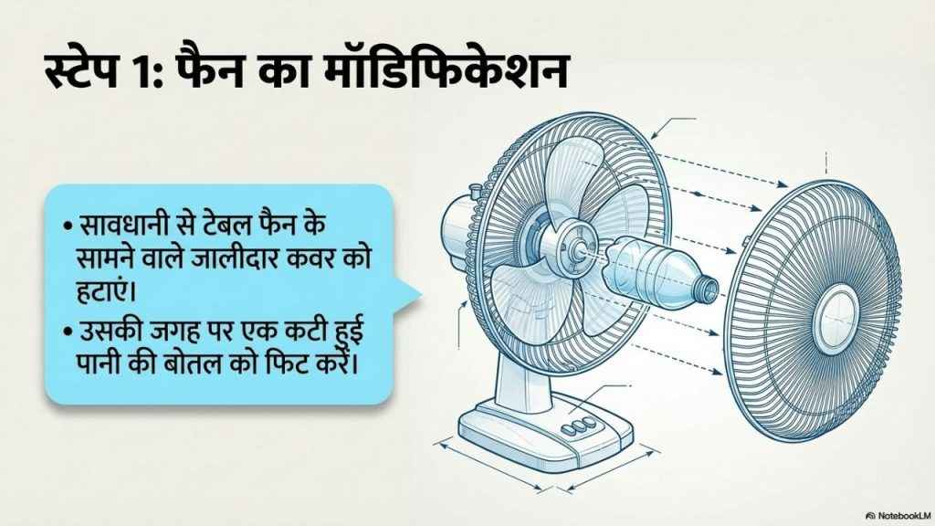 असल में, इंटरनेट पर एक वीडियो कुछ समय पहले वायरल हो रहा था जो दिखा रहा था कि आप कैसे बेहद ही सस्ते में ठंडी हवा पाकर गर्मियों से छुटकारा पा सकते हैं। इसमें एक टैबल फैन का इस्तेमाल दिखाया गया है। इस फैन को कैसे सही प्रकार से इस्तेमाल किया जा सकता है कि आपको निरंतर ठंडी हवा मिलती रहे और बिजली के मोटे बिल से भी आपको राहत मिल जाए। असल में, वायरल वीडियो दिखाता है कि कैसे टेबल फैन के आगे के कवर को हटाकर मात्र एक प्लास्टिक की बोतल को काटकर फिट कर देने से आपको राहत मिल सकती है। आइए पूरी प्रक्रिया को समझते हैं।