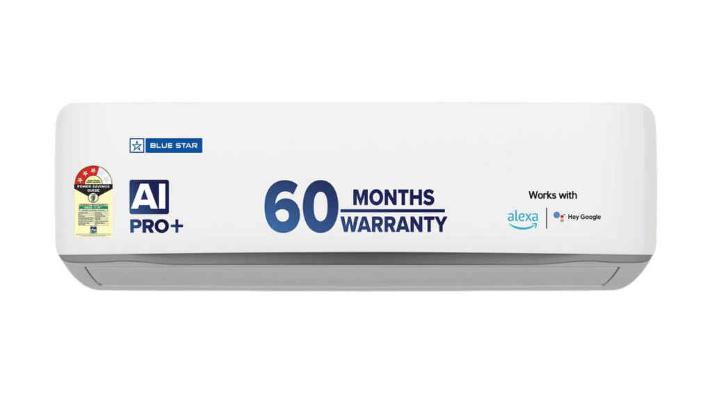 ब्लू स्टार का यह स्मार्ट एसी भी वॉइस कमांड तकनीक के साथ आता है. इसमें 1 टन क्षमता वाला मॉडल भी उपलब्ध है. इसमें कॉपर कंडेंसर, सेल्फ क्लीन तकनीक, एआई प्रो प्लस और डीजीक्यू हेप्टा सेंसर मौजूद है. यह भी खास 180 स्क्वायर फीट तक के कमरों के लिए बना है. यह 918.45 kWh तक पावर कंज़्यूम करता है. इसमें एक साल की कॉम्प्रिहेंसिव वॉरंटी, लाइफ टाइम कम्प्रेसर वॉरंटी और 5 साल की PCB वॉरंटी मिलती है.