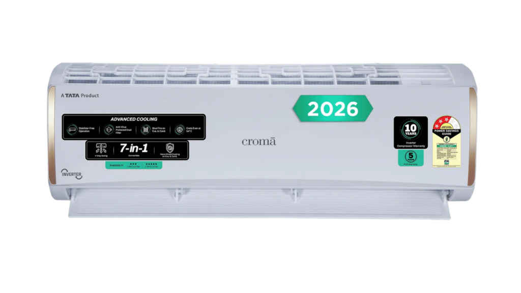 क्रोमा का यह 7-इन-1 कन्वर्टिबल 1.5 टन क्षमता वाला एसी 3 स्टार रेटेड है. यह एसी इन्वर्टर पर भी चल सकता है और 4-वे ऑटो स्विंग फीचर के साथ आता है. यह 2026 का लेटेस्ट मॉडल है जो कॉपर कंडेंसर भी ऑफर करता है. यह एसी 180 स्क्वायर फीट तक के कमरों के लिए सही है. इसमें ऑटो रीस्टार मेमोरी और ऐंटी-वायरस प्रोटेक्शन के साथ डस्ट फ़िल्टर भी मिलता है. इसके साथ कंपनी एक साल की कॉम्प्रिहेंसिव वॉरंटी, 10 साल की कंप्रेसर वॉरंटी और 5 साल की PCB वॉरंटी देती है.