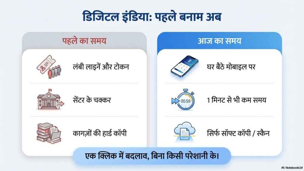 एक समय था जब आधार कार्ड (Aadhaar Card) में किसी भी तरह के बदलाव या अपडेट के लिए लंबी लाइनों में लगना पड़ता था। आधार सेंटर के बाहर टोकन लेकर खड़ा रहना पड़ता था, कई तरह के डॉक्यूमेंट्स के हार्ड कॉपी भी लेकर जाना होता था। हालांकि, जिस समय ऐसा हो रहा होगा, हो रहा होगा, अब ऐसा नहीं होता है। इस समय Aadhaar Card को अपडेट करना या इसमें किसी भी तरह का बदलाव करना बेहद ही आसान हो गया हैं। हालांकि, नाम-पता और लिंग आपको कितनी कितनी बार और डेट ऑफ बर्थ को कितनी बार अपडेट करना है, इसे लेकर नई गाइडलाइन आ चुकी है। आज हम इसकी चर्चा नहीं करने वाले हैं। हम आपको Aadhaar Card को बेहद ही आसानी से Update करने वाले प्रोसेस को बताने वाले हैं, खासकर अगर आप अपना पता आधार कार्ड में बदलना चाहते हैं तो उसे कैसे आप एक मिनट से भी कम समय में कर सकते हैं और कहाँ कर सकते है।