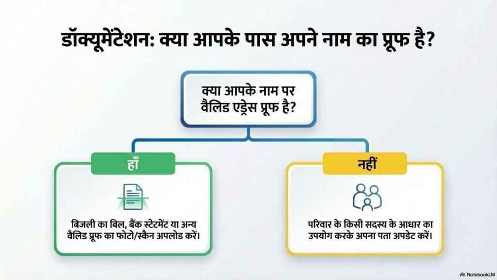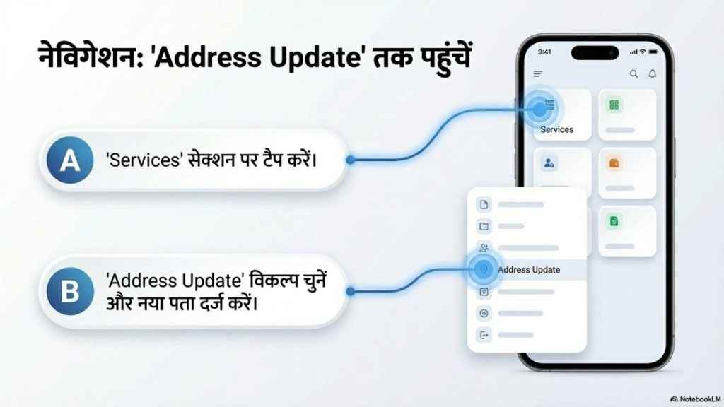 जब आप ऐप को अपने एंड्रॉयड या iOS फोन में डाउनलोड और इंस्टॉल कर लेते हैं तो आपको इसमें लॉगइन करके Services सेक्शन में जाना होगा। यहाँ आपको Address Update वाला ऑप्शन मिलने वाला है, इसे चुनने के बाद आपको अपना नया पता दर्ज करना होगा। अब जब आप पता भर लेते हैं तो आपको इस पते का कोई प्रूफ भी देना होगा, आप एड्रेस प्रूफ का फोटो या स्कैन कॉपी अपलोड कर सकते हैं, याद रहे यह सही दस्तावेज होना चाहिए। आप इसके लिए क्या क्या जमा कर सकते हैं, इसकी जानकारी आपको UIDAI की आधिकारिक वेबसाइट पर मिल जाने वाली है। हालांकि, अगर आप वहाँ नहीं जाना चाहते तो यहाँ जानकारी मौजूद है। अड्रेस प्रूफ के तौर पर आप बिजली बिल, बैंक स्टेटमेंट या कोई अन्य वैलिड अड्रेस प्रूफ जमा कर सकते हैं। अगर आपके पास अपने नाम का एड्रेस प्रूफ नहीं है, तो आप परिवार के किसी सदस्य के आधार के जरिए भी एड्रेस अपडेट कर सकते हैं।