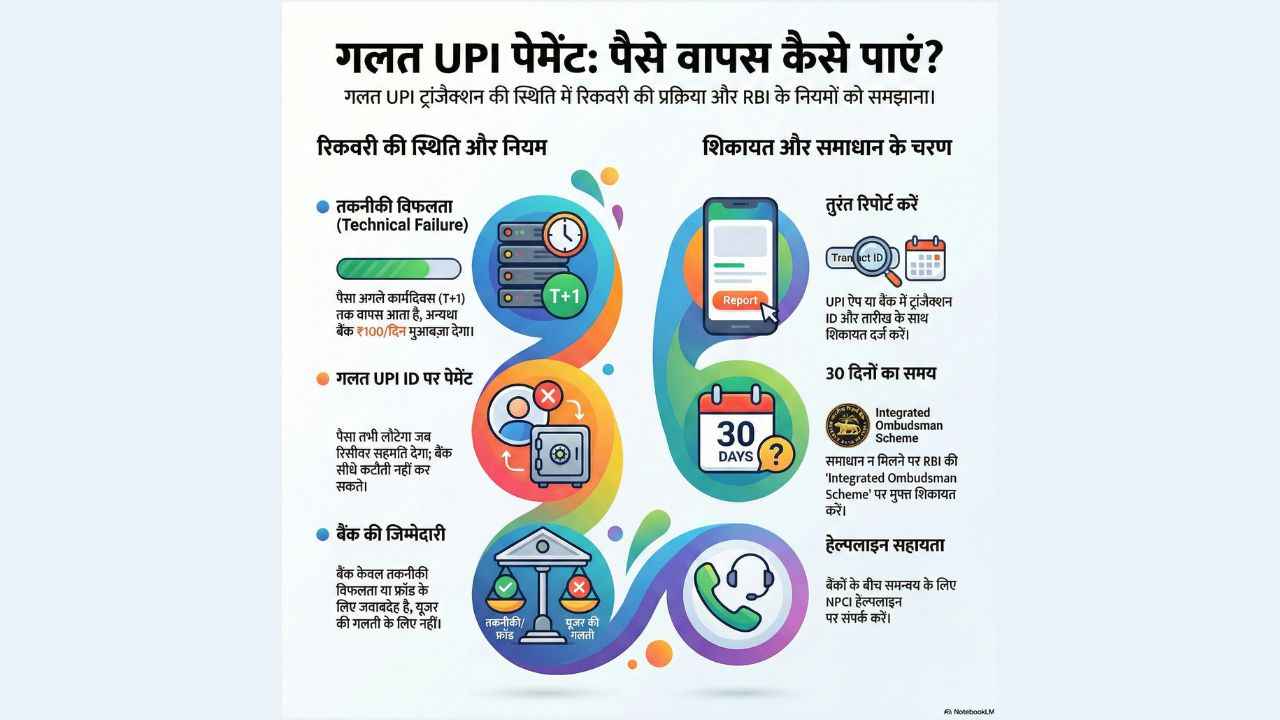 अगर आपने गलती से पैसा भेज दिया है, तो तुरंत अपने UPI ऐप या बैंक के जरिए शिकायत दर्ज करें। आपको ट्रांजैक्शन ID, तारीख और अमाउंट की जानकारी देनी होगी। शुरुआती जांच आमतौर पर 1 से 3 वर्किंग डेज़ में हो जाती है, लेकिन पूरा मामला सुलझने में ज्यादा समय भी लग सकता है। अगर रिसीवर पैसा लौटाने से मना कर देता है, तो रिकवरी संभव नहीं होती और इस स्थिति में कोई ऑटो-कंपनसेशन भी नहीं मिलता।