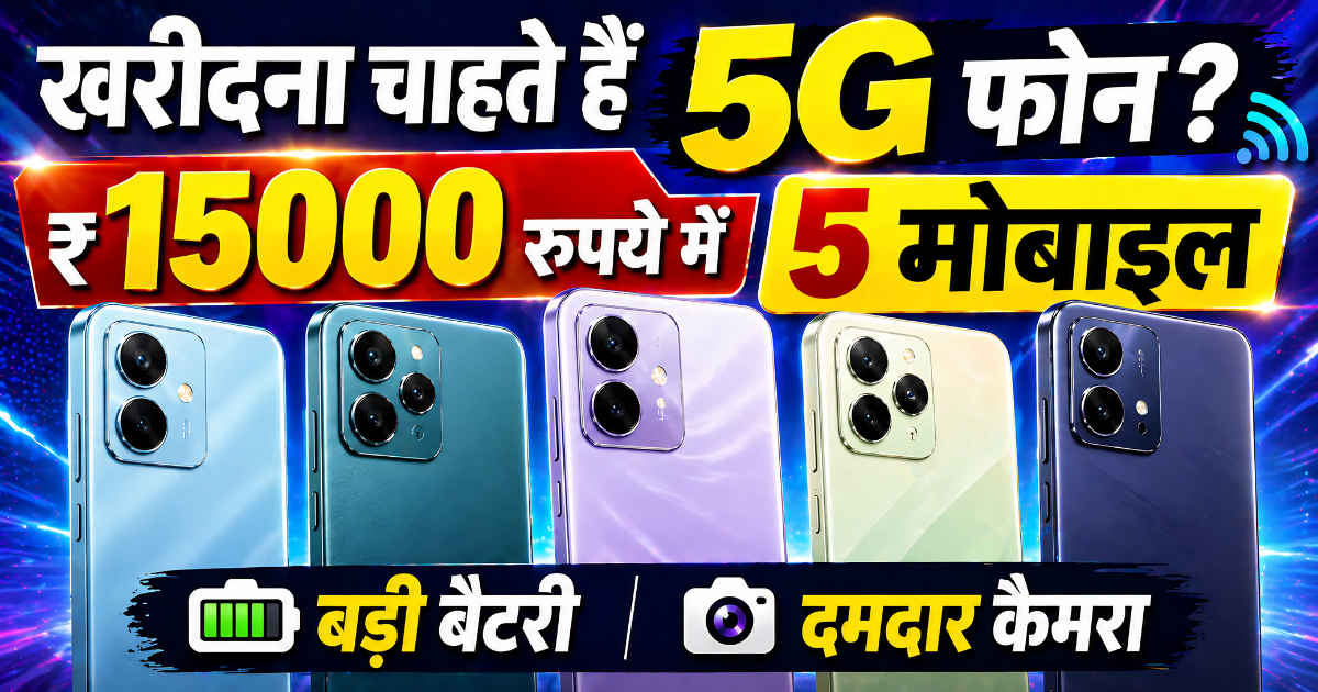 2026 में एक अच्छा 5G स्मार्टफोन इस समय मिलना ज्यादा मुश्किल काम नहीं है। इस समय स्मार्टफोन्स का बाजार इस कदर भरा पड़ा है कि एक की तलाश करने निकलो तो आपको सैंकड़ों ऑप्शन मिल जाने वाले हैं। इसके अलावा अगर आप 15000 रुपये के बजट में एक दमदार और सबसे जरूरी एक 5G फोन खरीदना चाहते हैं तो आपके लिए हमने सबसे दमदार फोन्स की अल लिस्ट तैयार की है। इस लिस्ट में आपको 15 हजार के अंदर आने वाले सबसे दमदार फोन्स मिलने वाले हैं। इनकी खासियत केवल और केवल 5G सपोर्ट ही नहीं, बल्कि यह सबसे उम्दा कैमरा और उससे भी बढ़कर सबसे दमदार बैटरी से लैस हैं। इन फोन्स को आप सस्ते में परफॉरमेंस का दमदार मिश्रण भी मान सकते हैं। आइए अब इन फोन्स के बारे में एक एक करके जानते हैं।