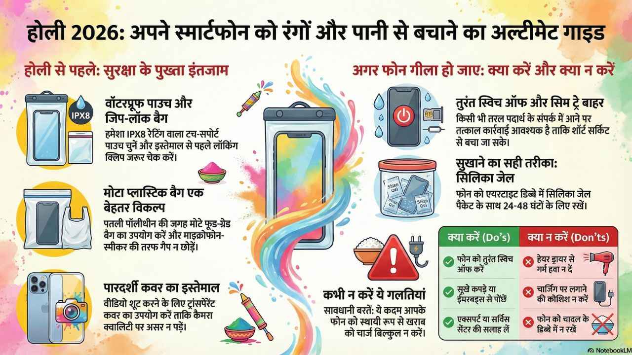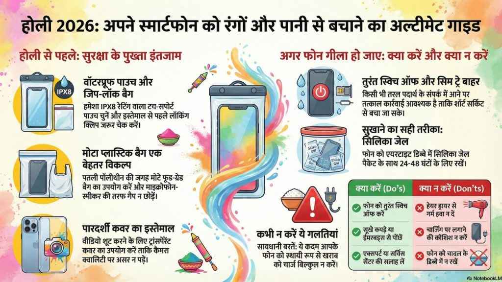 Holi 2026: इस साल 4 मार्च को होली का जश्न देश को रंगों से सराबोर कर देने के लिए तैयार है। रंग, पानी, पिचकारी और सेल्फी, इस रंग भरे त्योहार पर यह सब एक साथ होता है। लेकिन हर साल एक गलती दोहराई जाती है, जो मैं सालों से देख रहा हूँ लोग अपने स्मार्टफोन प्रोटेक्शन को ज्यादा तवज्जो नहीं देते हैं, ऐसे में होली खत्म होते होते और उनके सिर से खुमार उतरते उतरते उन्हें पता चलता है कि फोन में पानी जा चुका और यह काम नहीं कर रहा है, समस्या उस समय बढ़ जाती है जब इस बात का पता लगते लगते घंटों हो जाते हैं। अब जो डिवाइस आज सिर्फ कॉलिंग तक सीमित नहीं रहा है, उसका अचानक से खराब हो जाना आपको टेंशन दे सकता है। अब ऐसे में किया क्या जाए इसी पर आज होली 2026 से पहले ही चर्चा होने वाली है ताकि आप कुछ इंतेज़ाम पहले से ही कर लें, ताकि फोन में रंग और पानी जाए ही न।