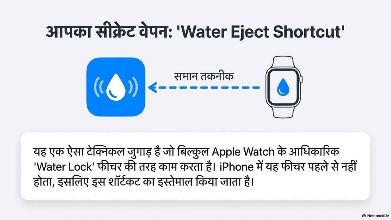 बिल्कुल वैसे ही जैसे Apple Watch में Water Lock फीचर काम करता है, बस iPhone में ये फीचर officially नहीं है, इसलिए ये shortcut इस्तेमाल किया जाता है।