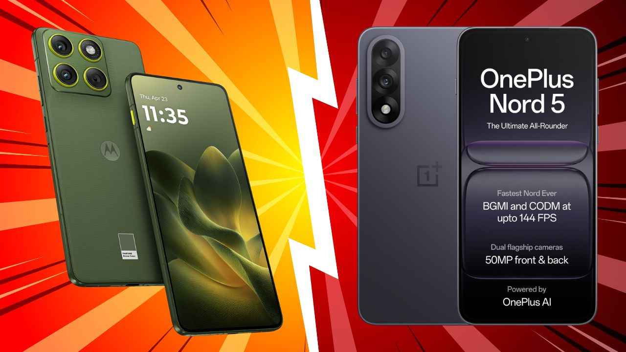 30,000 रुपये के आसपास का स्मार्टफोन सेगमेंट आजकल सबसे ज्यादा प्रतिस्पर्धी बन चुका है, इस सेगमेंट में एक नए फोन के तौर पर Motorola Edge 70 को इंडिया के बाजार में लॉन्च किया गया है, हालांकि, जैसे कि आप जानते हैं कि इस श्रेणी में यह एकमात्र फोन नहीं है, इस प्राइस रेंज में बहुत से फोन्स बाजार में उपलब्ध हैं। लेकिन Motorola Edge 70 को कड़ी टक्कर देने के लिए बाजार में OnePlus Nord 5 5G को सबसे आगे बैठा देखा जा रहा है। ऐसा भी कह सकते ही कि Motorola Edge 70 5G और OnePlus Nord 5 5G की आमने सामने की टक्कर है। एक तरफ OnePlus Nord 5 अपने फ्लैगशिप-स्टाइल डिस्प्ले, 6800mAh की बैटरी और Snapdragon 8s Gen 3 प्रोसेसर के साथ एक दमदार फोन है, दूसरी ओर, Moto Edge 70 स्मार्टफोन अभी हाल ही में लॉन्च हुआ एक बेहतरीन स्लिम और हल्के डिजाइन वाला फोन है, जो Pantone-validated कैमरा ट्यूनिंग और 4500 निट्स की ब्राइट डिस्प्ले के साथ ग्राहकों को प्रीमियम फ़ील दे रहा है। दोनों फोन्स अपने अपने लेवल पर दमदार स्पेक्स और फीचर्स से लैस हैं। आइए इन दोनों नहीं फोन्स का फुल कम्पैरिजन देखते हैं और जानते हैं, कौन सा फोन ज्यादा बेहतर पैकेज किफायती वैल्यू में प्रदान करता है।