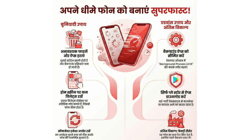 अगर आपका फोन बहुत ज्यादा स्लो हो चुका है और ऊपर बताए गए उपायों से भी सुधार नहीं हो रहा, तो आखिरी विकल्प के तौर पर फोन को फैक्ट्री रीसेट किया जा सकता है। हालांकि, यह प्रक्रिया फोन का सारा डेटा मिटा देती है, इसलिए फैक्ट्री रीसेट से पहले अपने जरूरी डेटा का बैकअप लेना बिल्कुल न भूलें। इन आसान उपायों को अपनाकर आप अपने स्मार्टफोन की स्पीड और परफॉर्मेंस को काफी हद तक बेहतर बना सकते हैं।