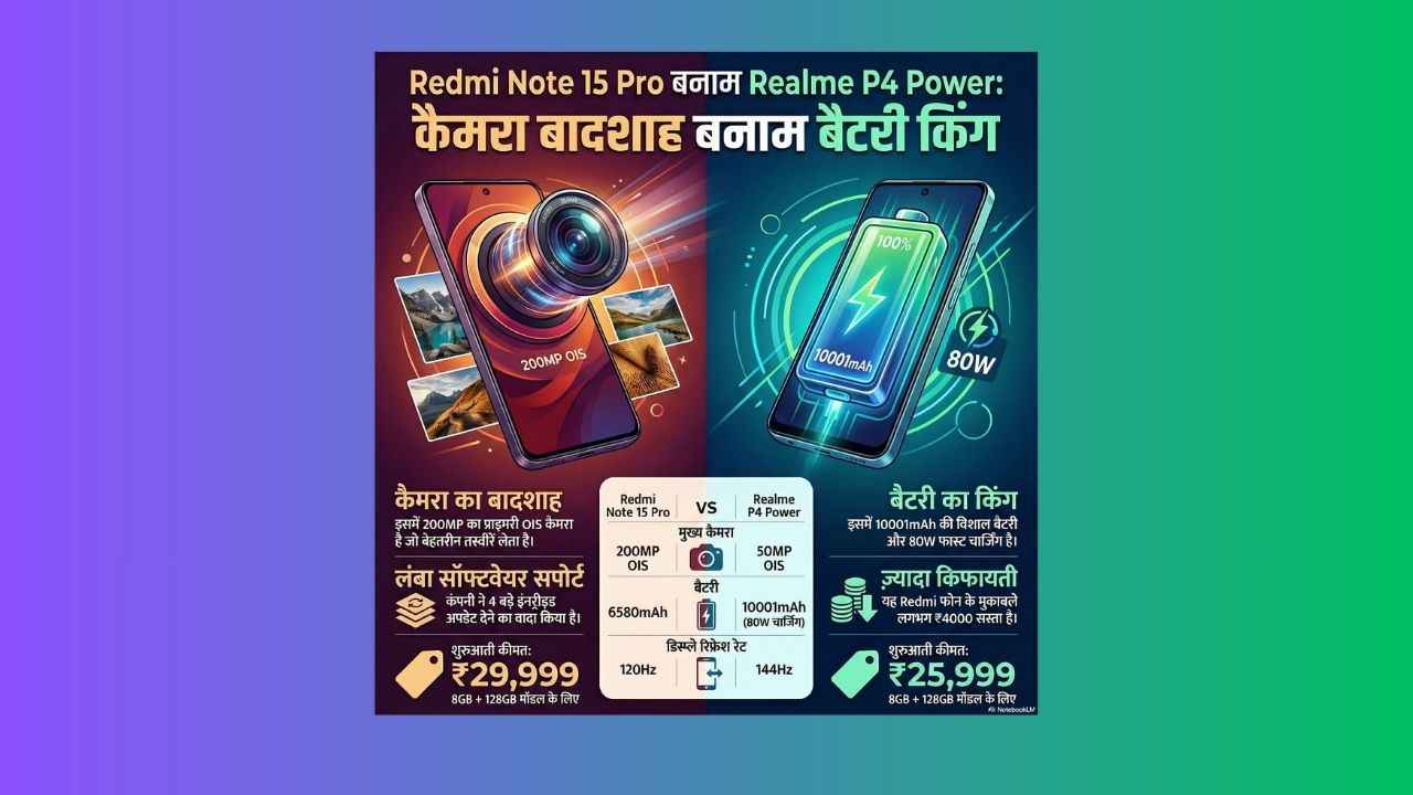 Redmi Note 15 Pro बनाम Realme P4 Power: 10001mAh की बड़ी बैटरी और 200MP कैमरा वाले फोन्स के बीच घमासान युद्ध