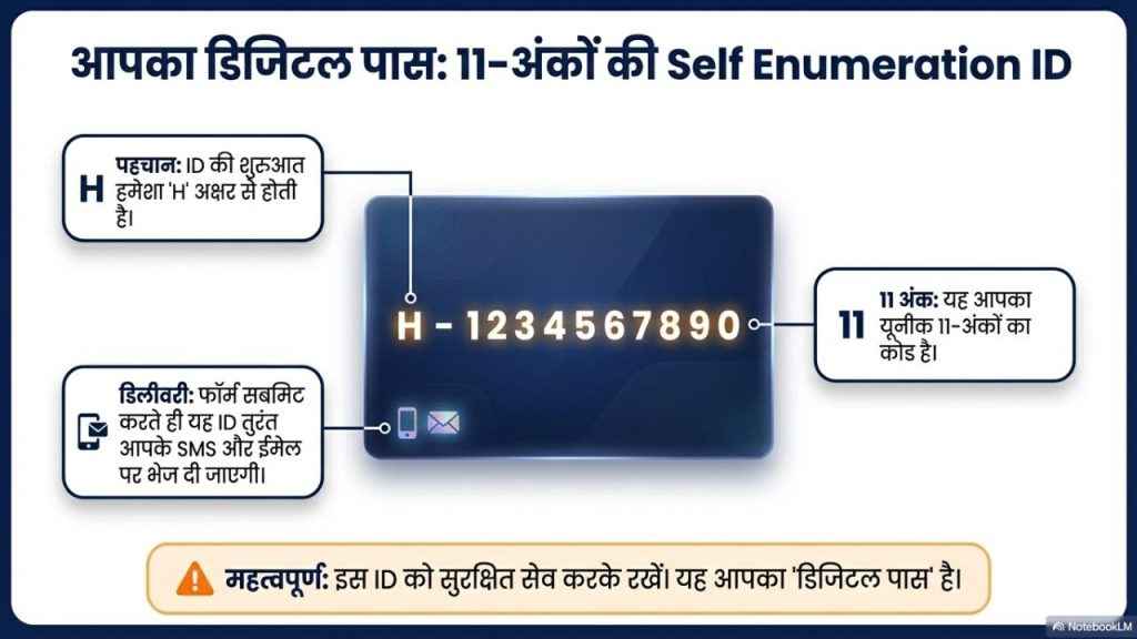 फॉर्म भरने के बाद आपको एक 11 अंकों की Self Enumeration ID मिलने वाला है, जिसे अपको संभालकर रखना होगा।
