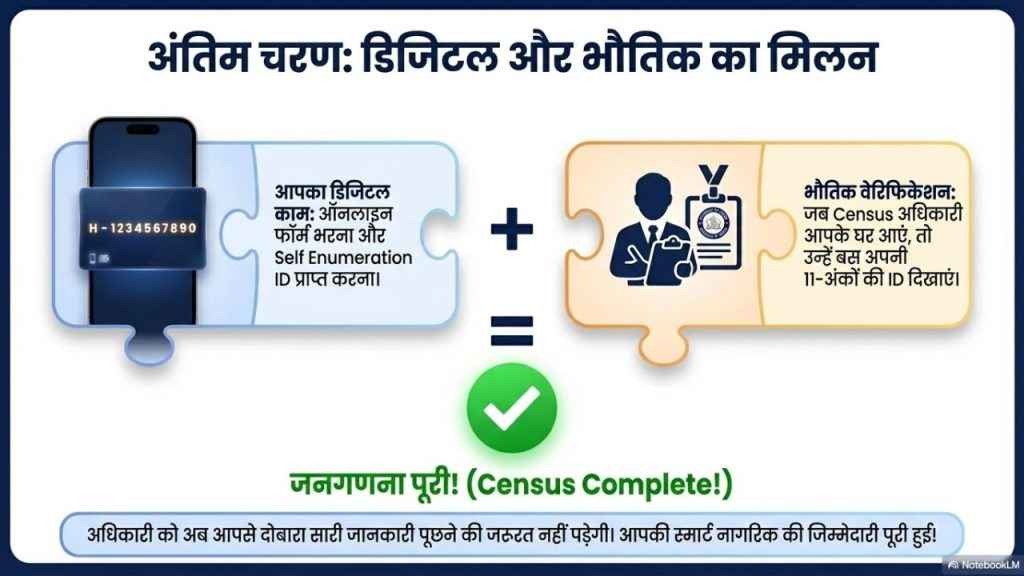 इस ID को आपको संभालकर रखना है। जब Census अधिकारी आपके घर आएंगे, तो आपको उन्हें यही ID देना होगा, जिससे आपका Census Verification पूरा हो जाएगा।