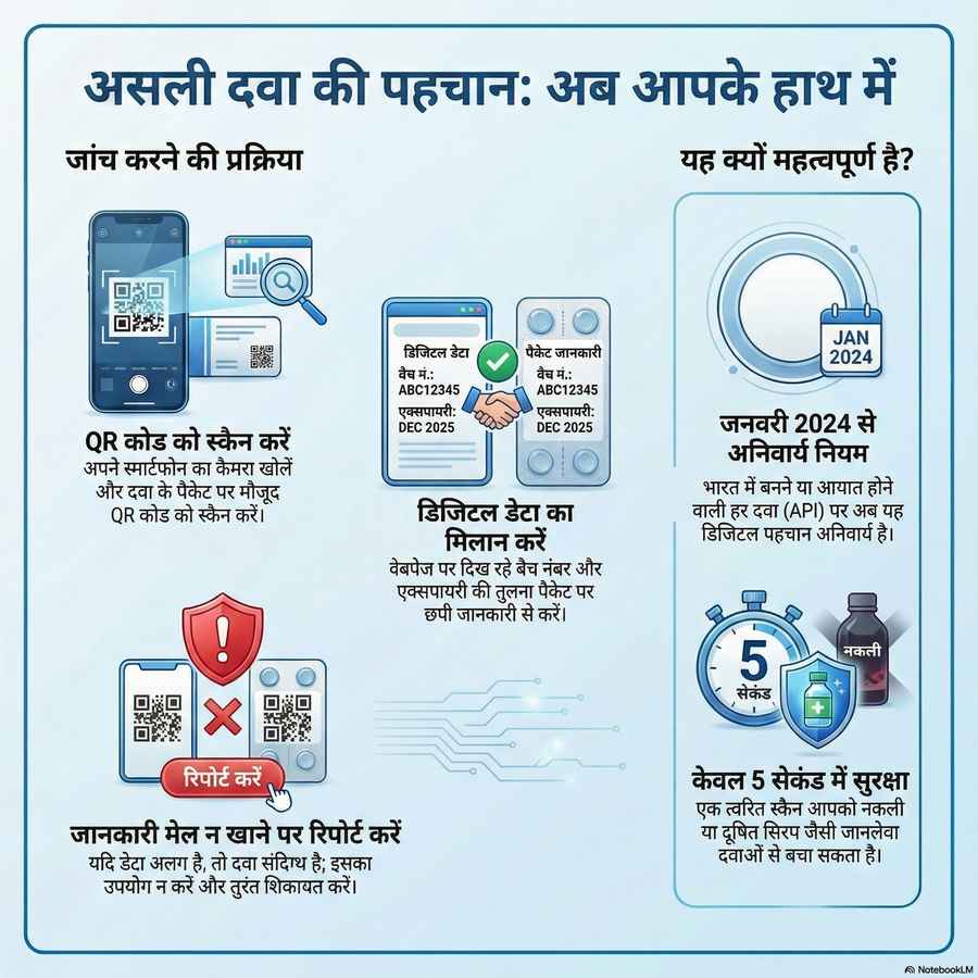 QR स्कैन कर दवा की असलियत, बैच नंबर और एक्सपायरी तुरंत चेक कर सकते हैं।