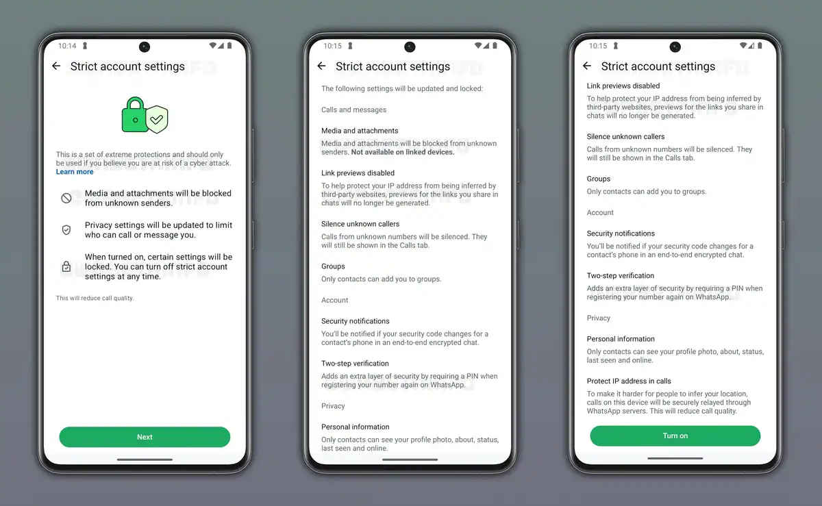 नए फीचर को WhatsApp के Android बीटा वर्जन 2.25.33.4 में देखा गया है. यह फीचर यूजर्स को एक सिंगल टॉगल स्विच से सारे एडवांस सिक्योरिटी ऑप्शन एक साथ ऑन करने की सुविधा देगा ताकि बार-बार अलग-अलग प्राइवेसी सेटिंग्स एडजस्ट न करनी पड़ें. साधारण शब्दों में कहें तो यह फीचर उन लोगों के लिए है जो ज्यादा प्राइवेसी-कॉन्शस या साइबर रिस्क में हैं, जैसे एक्टिविस्ट, जर्नलिस्ट, पब्लिक फिगर्स या हाई-प्रोफाइल प्रोफेशनल्स.