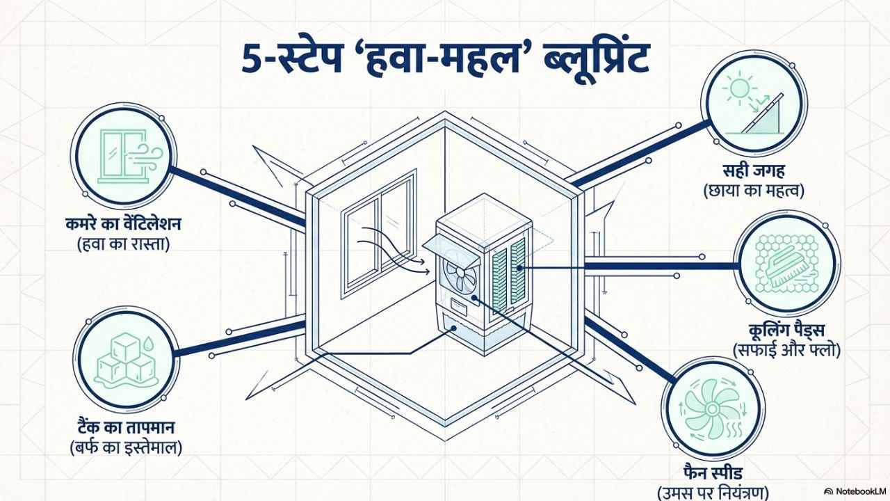 - सीधी धूप में रखा कूलर गर्म हवा खींचता है, जिससे कूलिंग कम हो जाती है।