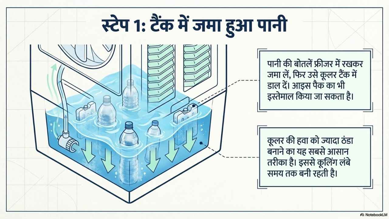 कूलर में ठंडे पानी या बर्फ का इस्तेमाल करें