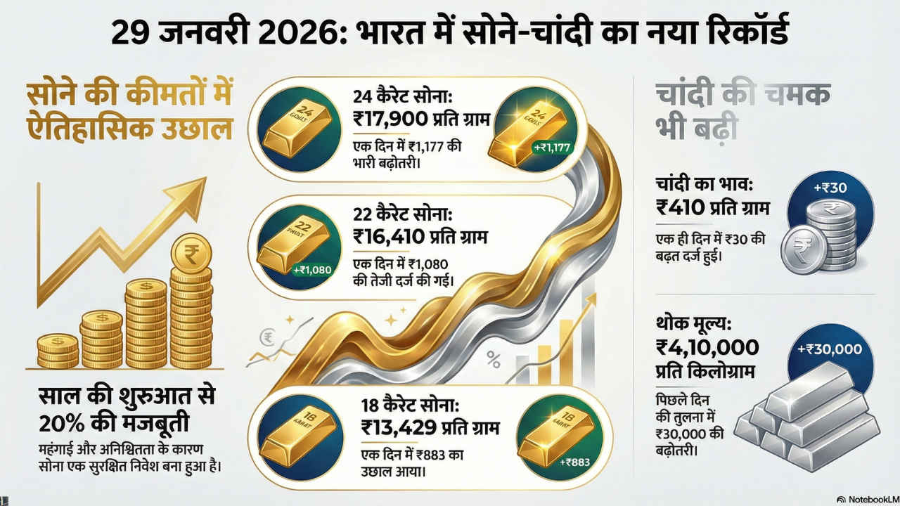 Gold Rate Today: सोने की कीमत में अब तक का सबसे बड़ा उछाल! चांदी ने भी दिखाई तेज़ी, जानें 29 जनवरी का रेट