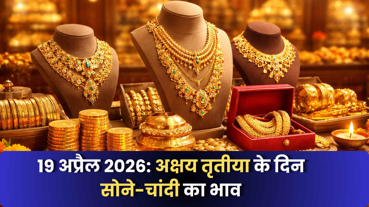 Gold Silver Prices Today: 19 अप्रैल 2026 को अक्षय तृतीया के चलते देशभर में सोने और चांदी की मांग बढ़ी हुई है, जिसके कारण इनके दामों में लगातार उतार-चढ़ाव देखने को मिल रहा है। ताजा जानकारी के अनुसार, दिल्ली के सर्राफा बाजार में 24 कैरेट सोने की कीमत 1,600 रुपये की गिरावट के साथ 1,56,200 रुपये प्रति 10 ग्राम (सभी टैक्स सहित) दर्ज की गई। वहीं मल्टी कमोडिटी एक्सचेंज (MCX) पर सोने का वायदा भाव 0.95% बढ़कर 1,54,605 रुपये प्रति 10 ग्राम पहुंच गया, जो पिछले कारोबारी दिन 1,53,152 रुपये प्रति 10 ग्राम पर बंद हुआ था। ध्यान देने वाली बात है कि 29 जनवरी को सोने का वायदा भाव 1,80,779 रुपये प्रति 10 ग्राम के रिकॉर्ड स्तर तक पहुंच गया था।
