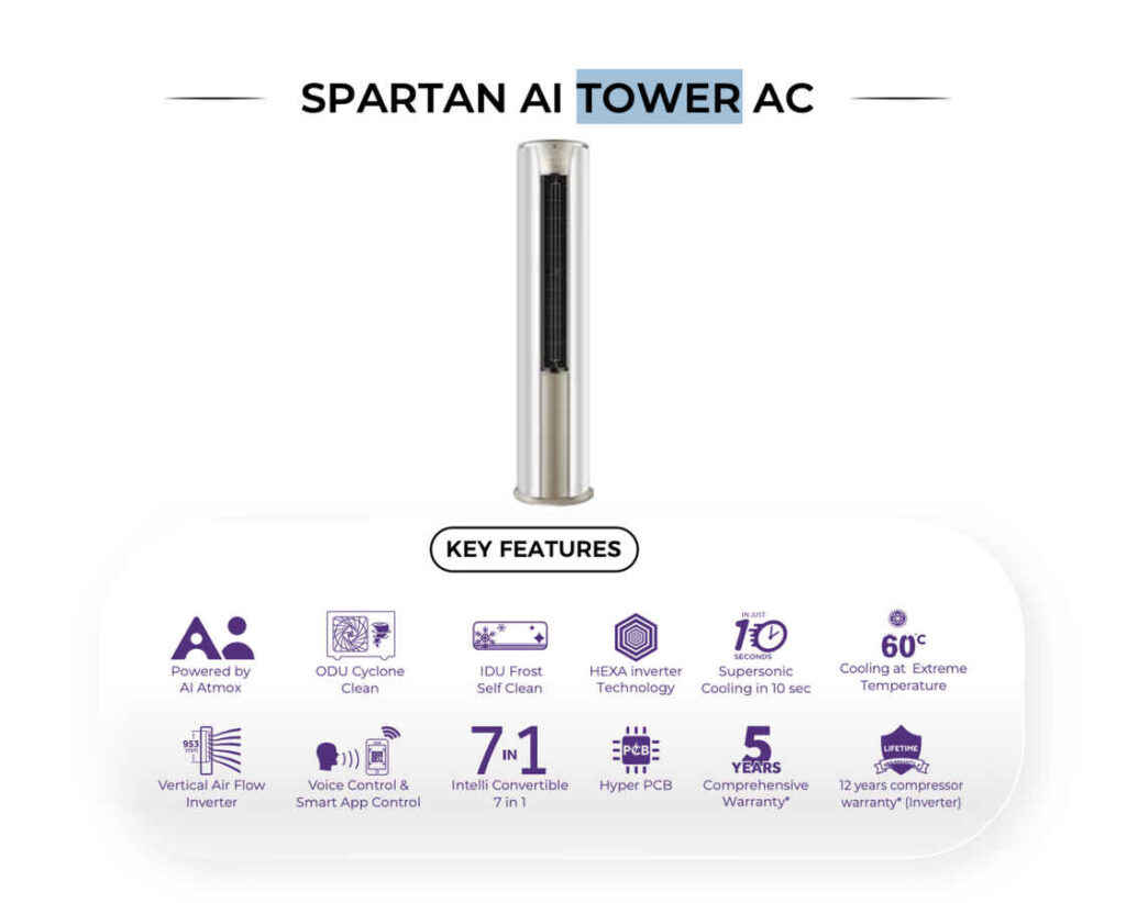 Haier Spartan AI Tower AC में मिलता है AI Pre-Cooling फीचर