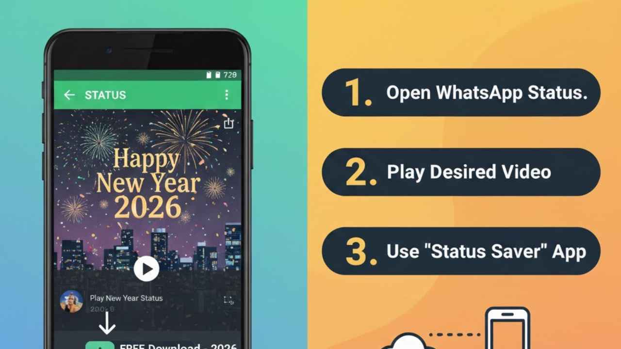 Happy New Year 2026 WhatsApp status video download: 2025 को अलविदा कहकर पूरी दुनिया खुशी, उम्मीद और नए सपनों के साथ 2026 का स्वागत कर रही है। नया साल हमेशा नई शुरुआत, नए लक्ष्य और अपनों के साथ खुशियां बांटने का मौका लेकर आता है। जैसे-जैसे वक्त बदला है, वैसे-वैसे लोग नए और क्रिएटिव तरीकों से नए साल की शुभकामनाएं देना शुरू करते हैं और ऐसा ही सालों से करते भी आ रहे हैं। आज के डिजिटल दौर में सोशल मीडिया शुभकामनाएं भेजने का सबसे आसान और लोकप्रिय जरिया बन चुका है, और इसमें WhatsApp की खास जगह है।