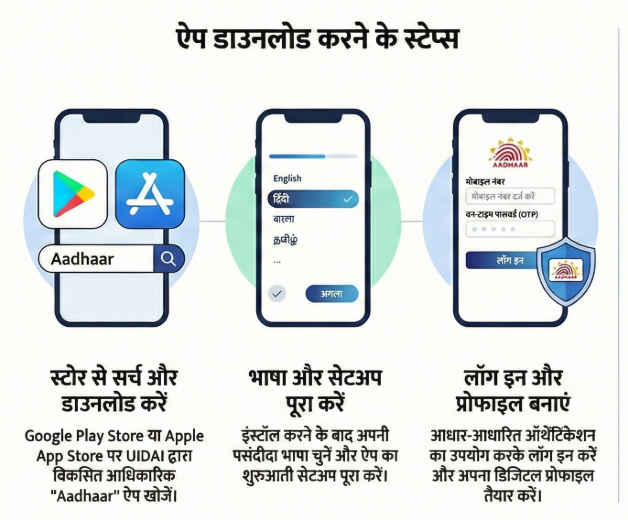 - UIDAI का आधिकारिक “Aadhaar” ऐप सर्च करें और डाउनलोड करें.