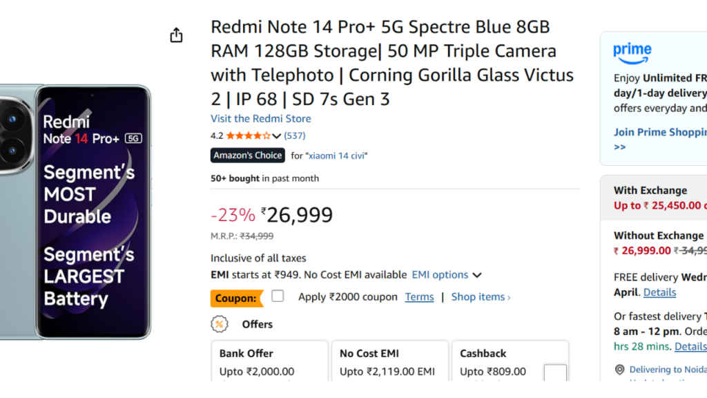 Redmi Note 14 Pro Plus की अमेज़न डील