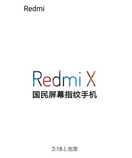 एक नए पोस्टर से रेड्मी-ब्रांड के स्मार्टफोन का टीज़र सामने आया है। पोस्टर के मुताबिक, Redmi X नाम से एक स्मार्टफोन को 15 फ़रवरी को लॉन्च किया जाना है। पोस्टर पर लिखे टेक्स्ट से पता चलता है कि डिवाइस इन-डिस्प्ले फिंगरप्रिंट स्कैनर के साथ आएगा। कम्पनी ने डिवाइस के बारे में अधिक जानकारी साझा नहीं की है और अभी डिवाइस की कीमत, स्पेसिफिकेशन या डिटेल्स के बारे में कुछ नहीं कहा जा सकता है।