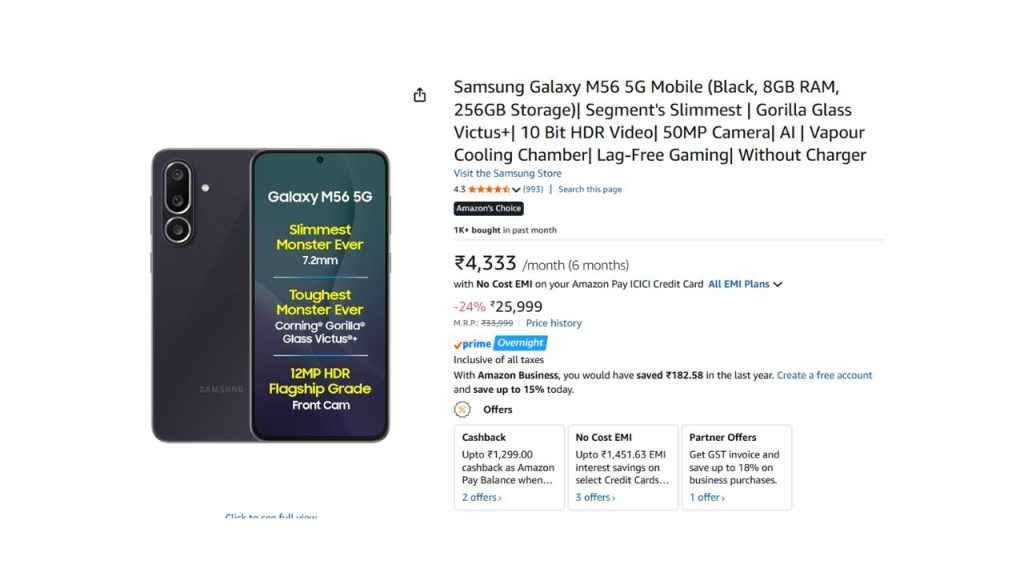 Samsung Galaxy M56 5G की कीमत और ऑफर