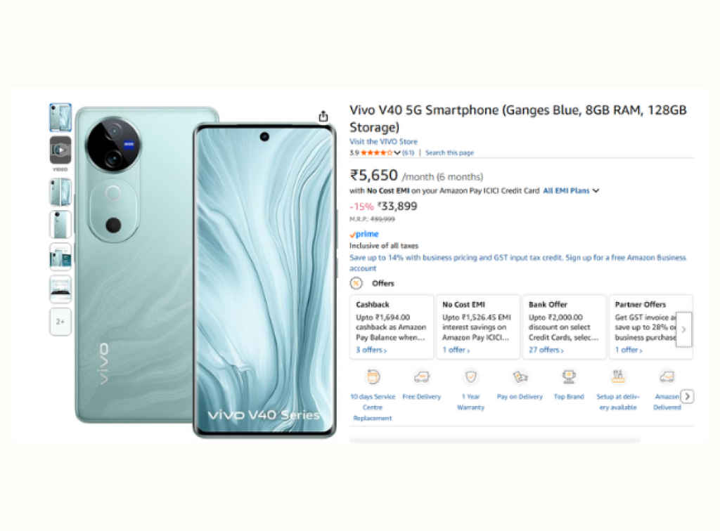 Amazon India पर किस प्राइस में मिल रहा Vivo V40?