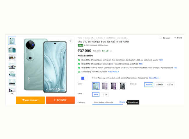 Flipkart पर किस प्राइस में मिल रहा Vivo V40?