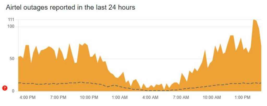 आउटेज ट्रैकर Downdetector के अनुसार, आज यानी 26 अगस्त को Airtel का नेटवर्क देशभर के कई हिस्सों में डाउन हो गया. शिकायतें दिन के पहले हिस्से में शुरू हुईं और दोपहर तक पीक पर पहुंच गईं, जब एक ही समय पर 7,000 से ज्यादा यूजर्स ने प्रॉब्लम्स रिपोर्ट कीं.
