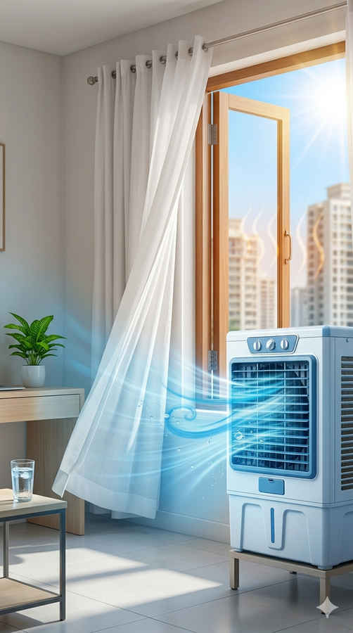 दिन में पर्दे लगा कर रखें ताकि गर्मी का प्रभाव कम रहे और कूलर कि ठंडक बनी रहे.