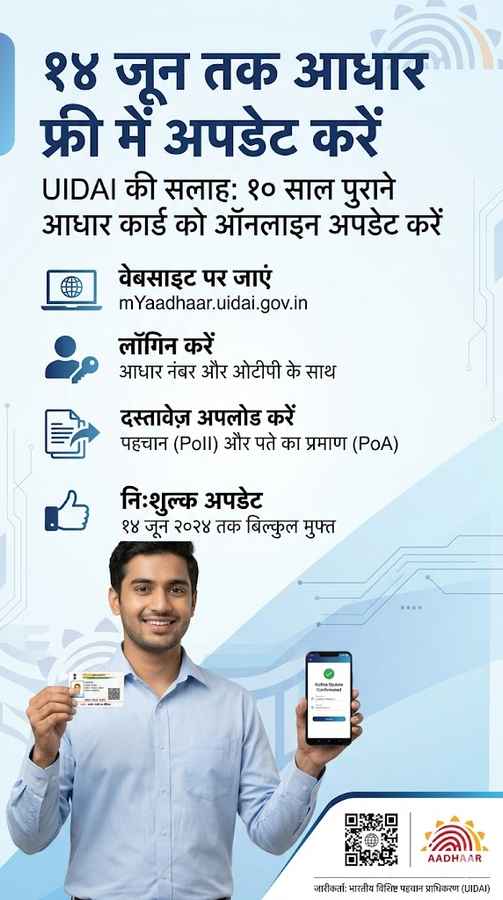 भारतीय विशिष्ट पहचान प्राधिकरण (UIDAI) ने आधार कार्ड धारकों के लिए अपनी कुछ बेसिक डिटेल्स को बदलने का 14 जून तक फ्री मौका दिया है. आइये जानें कि इसका लाभ कैसे उठाया जा सकता है.