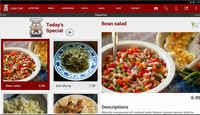 The restaurant app can be used by a chef or user, to see different menu categories and items. The sample app implements a swipe gesture to switch between different categories, and selecting a menu item brings up its details.